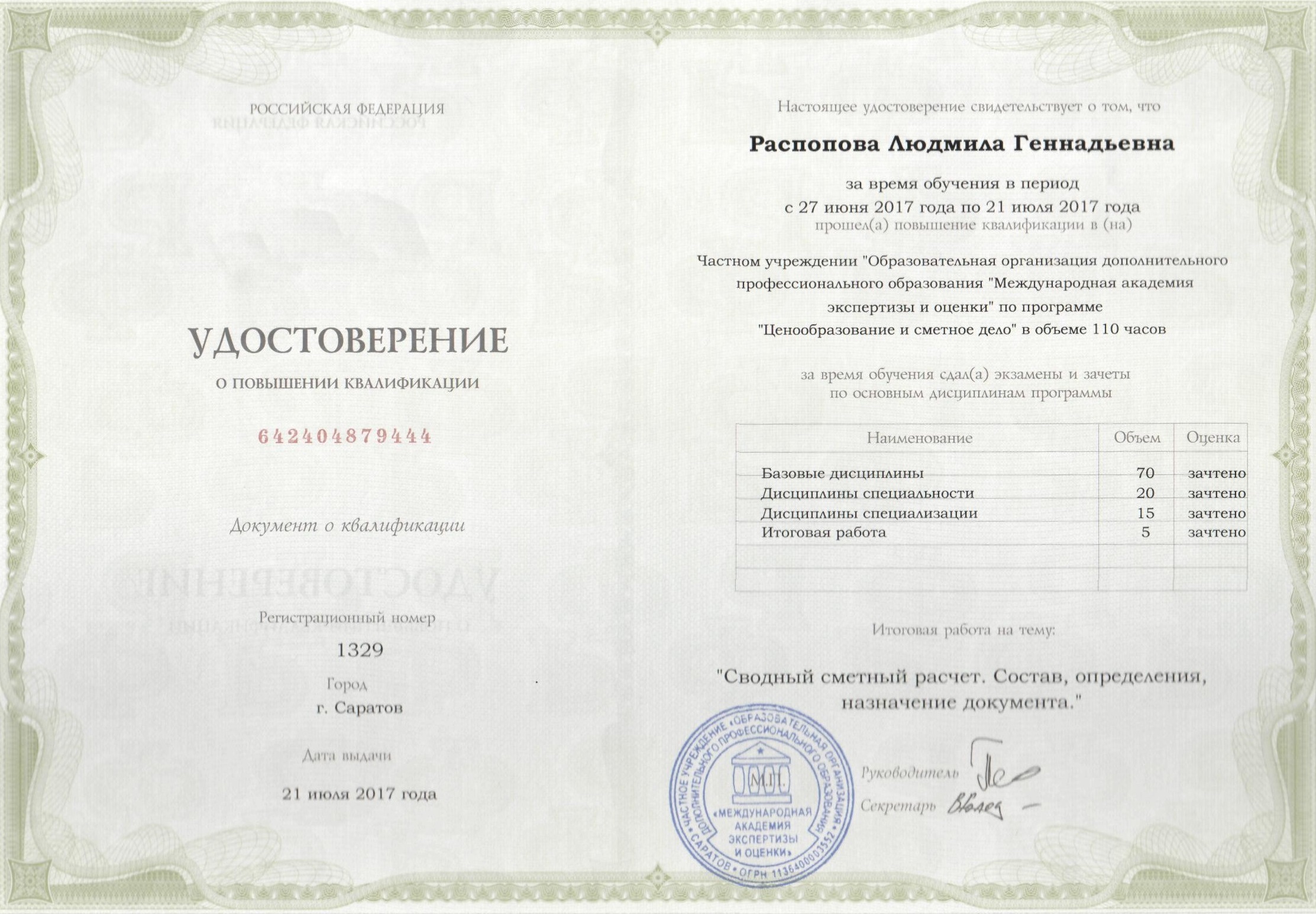 Получаете удостоверение о